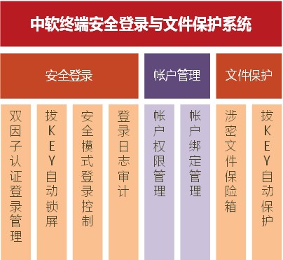 安全登录:双因子认证、拔KEY锁定、安全模式登录控制、登录日志审计。